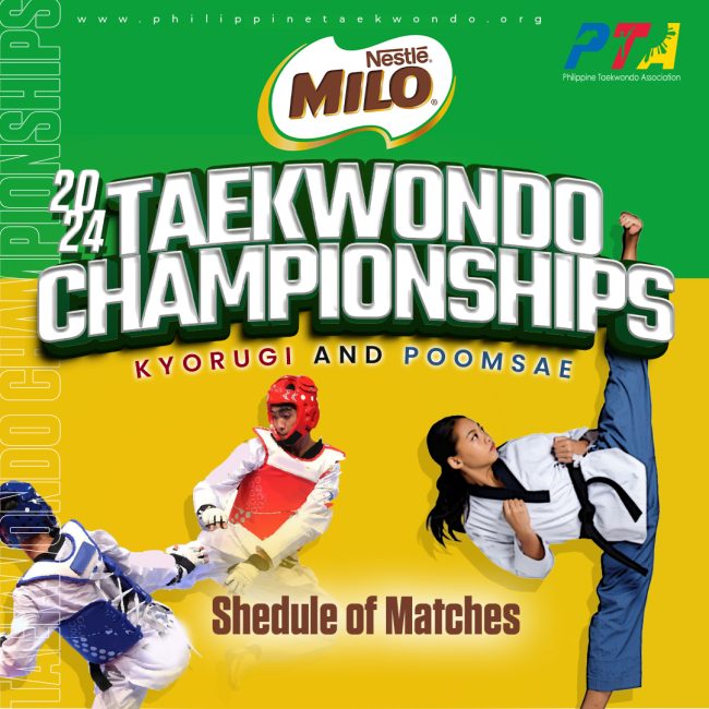 2024 MILO Taekwondo Championships UncategorizedBy Philippine TaekwondoAugust 23, 2024Leave a comment2024 MILO Taekwondo Championships Schedule of Matches